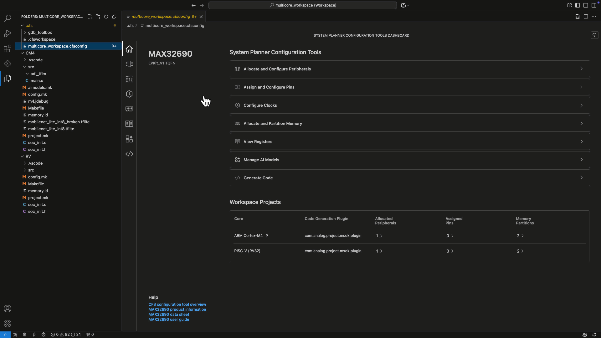 Build and optimize AI models directly inside your embedded workflow. Use the Embedded AI Tools in System Planner to import models, assign them to cores, validate compatibility, and generate deployment-ready source code.