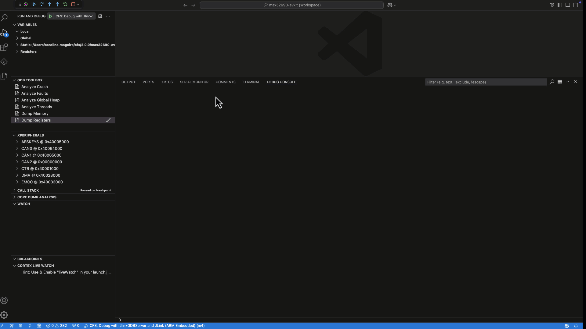 CodeFusion Studio provides an extended debugging ecosystem for multi-core systems with breakpoints, disassembly, cross-core support, and RTOS thread awareness.
