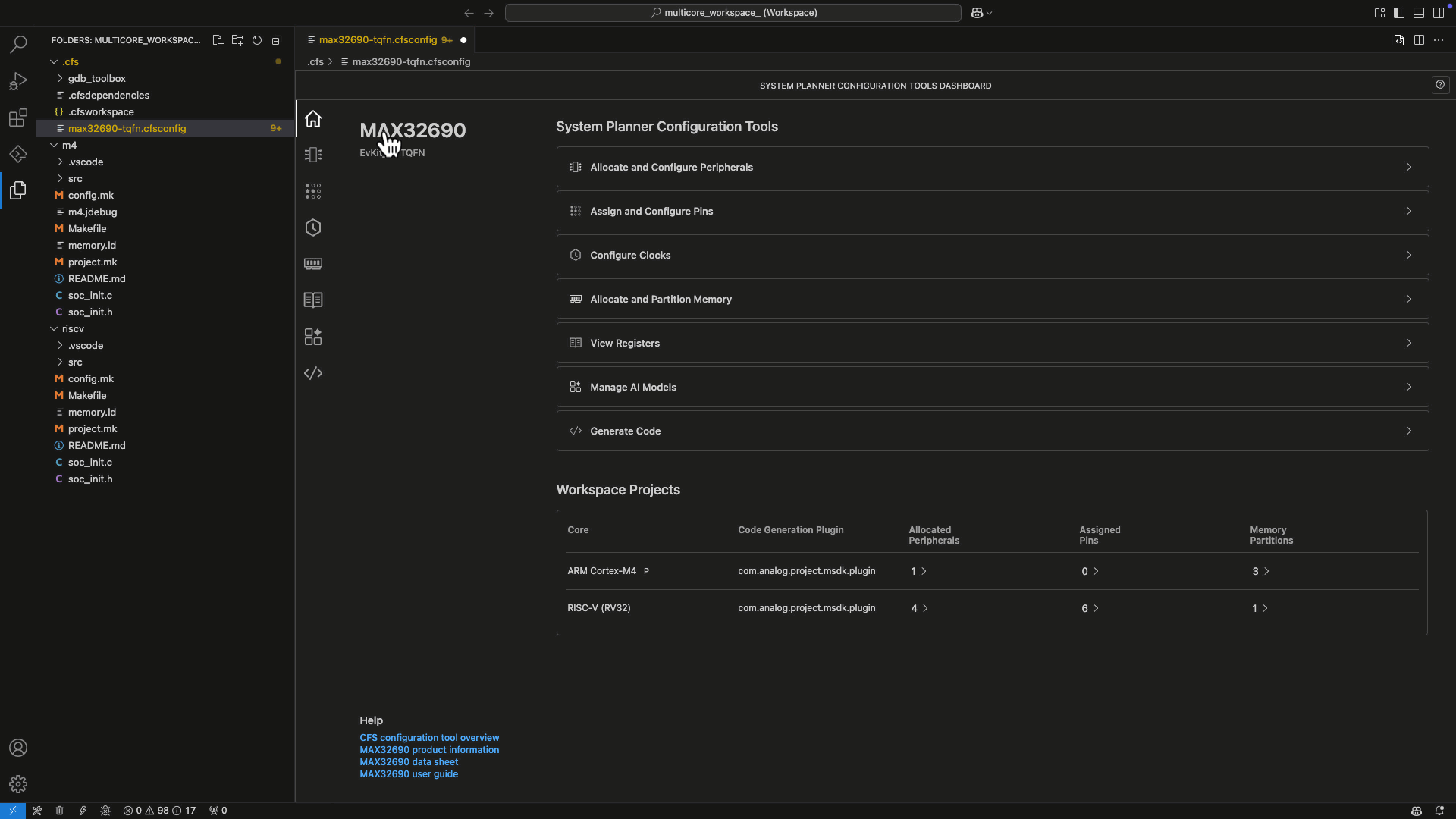 Use the System Planner to visually configure every aspect of your system — from memory and peripheral allocation to pin and clock behavior — and generate ready-to-build source code in one step.