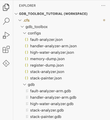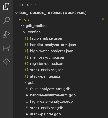 The configs directory contains the default GDB Toolbox JSON scripts that define which GDB commands to run.